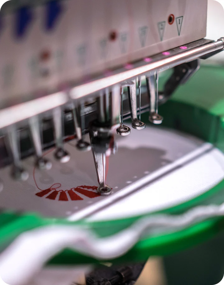 Every part of the process — from digitising and proofing to embroidery and DTF printing — happens right here in our own UK workshop. That means: